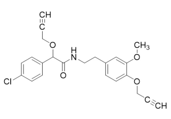 双炔酰菌胺分子式:C23H22ClNO4;相对分子质量411.88;结构式如图3。密度:1.2 ± 0.1 g/cm3,纯品外观为浅褐色无味粉末;250g/L悬浮剂外观为灰白色至棕色液体;悬浮率98%;常温贮存稳定。熔点:96.4~97.3℃;蒸汽压(25℃)<9.4×10-7Pa;在水中的溶解度(25℃)为4.2 mg/L,分配系数:logPow=3.2(25℃)。双炔酰菌胺原药质量分数≥93%;外观为浅褐色无味细粉末;pH值6~8;在有机溶剂中溶解度(25℃,g/L):丙酮300,二氯甲烷400,乙酸乙酯120,甲醇66,辛醇4.8,甲苯29,正己烷0.042。